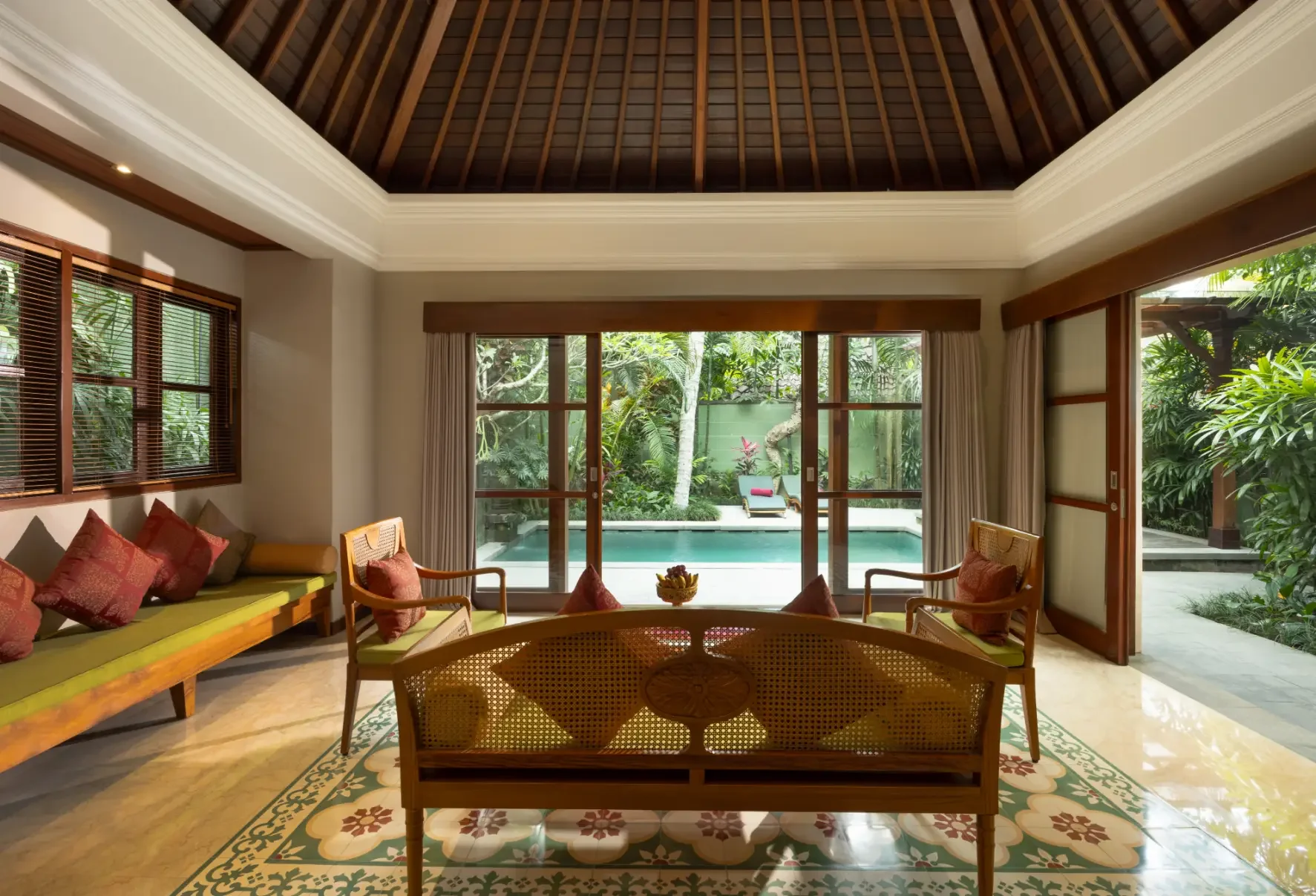 Experience elements of Ubud jungle living and an unparalleled sense of privacy from the exclusive 276m2 one-bedroom oasis featuring a stylish gazebo and living room, a lavish private pool, and a deck to unwind and feel the sun and breeze. Breathtaking warm golden covers to soothe your soul, complemented by a personal butler to cater to your every need makes up for a luxurious yet romantic experience.